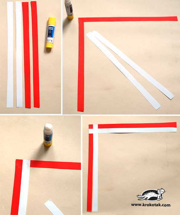 Ленты складываем как показано выше на рисунке, и проклеиваем их.